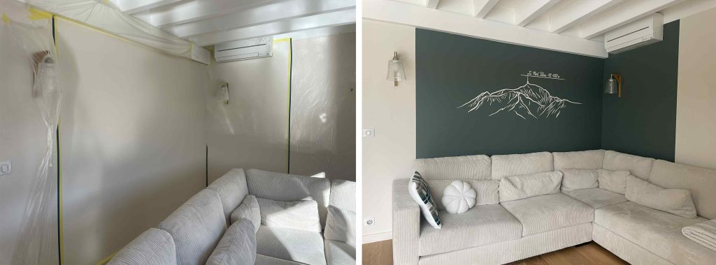 Des lignes épurées, quelques mots jetés, des couleurs en accord avec le décor.